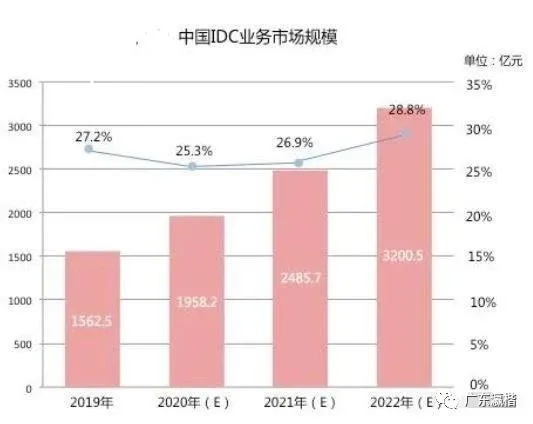 根據(jù)科智咨詢目前對(duì)外發(fā)布的《2019-2020年中國(guó)IDC產(chǎn)業(yè)發(fā)展研究報(bào)告》顯示,預(yù)計(jì)2019-2022年,中國(guó)IDC業(yè)務(wù)市場(chǎng)規(guī)模復(fù)合增長(zhǎng)率達(dá)到26.9%,到2022年,中國(guó)IDC業(yè)務(wù)市場(chǎng)規(guī)模將超過(guò)3200.5億元,同比增長(zhǎng)28.8%,進(jìn)入新一輪爆發(fā)期。